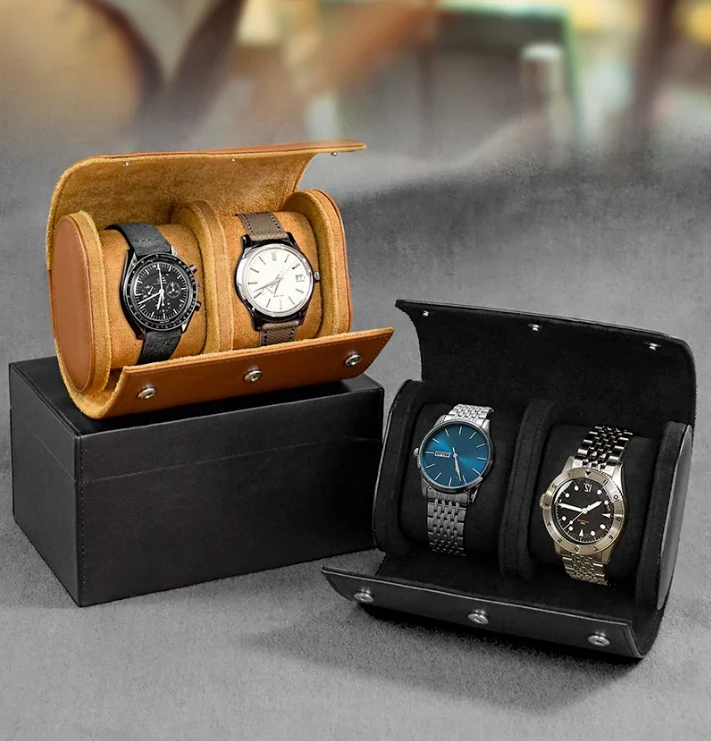 Crafted from smooth, premium leather with a soft suede interior, this roll features three individual watch compartments separated by padded dividers. A secure snap or buckle closure (depending on variation) keeps everything in place, while the supple structure allows for compact packing without compromising protection. Minimal on the outside, indulgent on the inside — it's built to travel as well as you do.