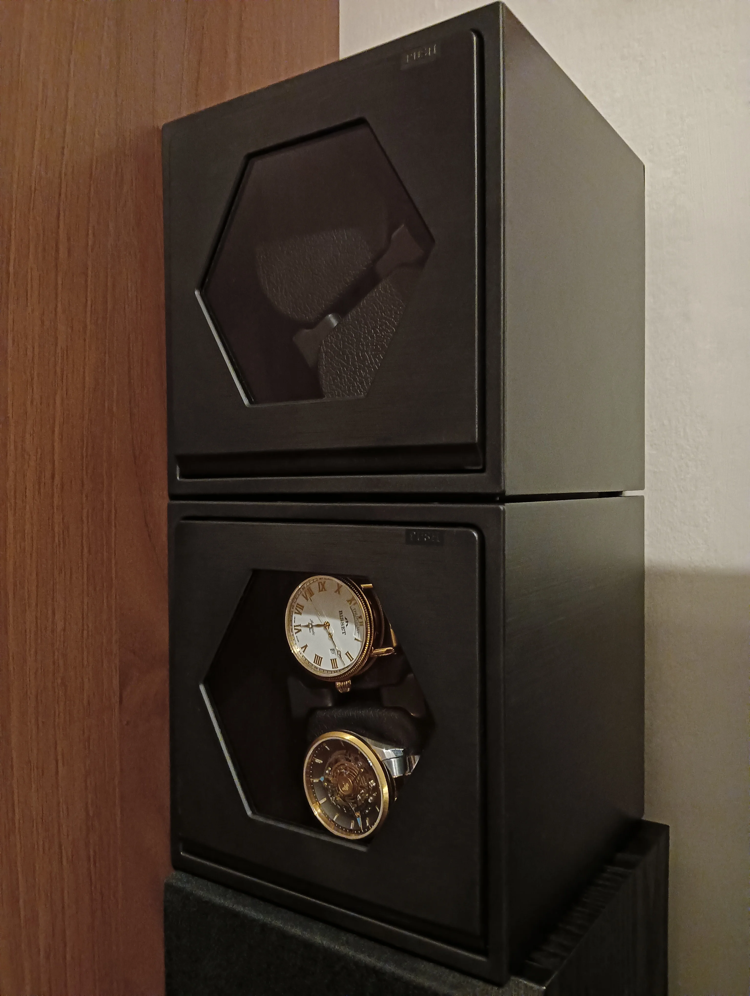 Our winders use a controlled rotation system that alternates smooth movement with balanced rest intervals, keeping your watch wound without unnecessary strain. This gentle, intermittent pattern supports accuracy, protects delicate components, and ensures your automatic timepiece stays ready to wear without the risk of overwinding.