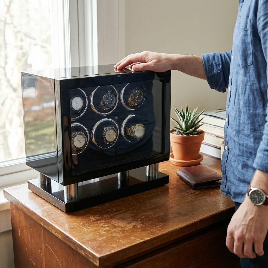 A watch winder mimics natural wrist movement, gently rotating your automatic timepiece to keep it running when not worn. This consistent motion keeps the internal mechanisms active and well-lubricated, preserving both accuracy and longevity.